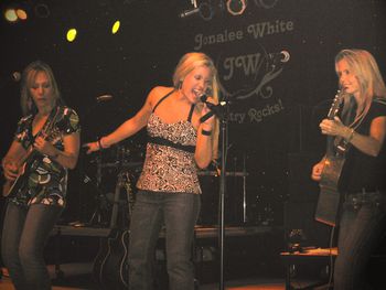 The three girls from the band, Molly, Kay, and me performing at the Columbia Music Hall, Portsmouth, OH!